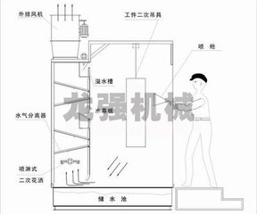 水簾噴漆室也叫濕式噴漆房,它處理漆霧效率高,可分為水(油)簾式、水洗式、水旋式等。水簾噴漆室采用低噪音高風量風機,確保噴漆回收效果的 。水簾噴漆室為工件噴涂提供:(1)潔凈的工作環(huán)境;(2)充分收集漆霧。 噴漆房的配置按工件大小、形狀、重量及生產(chǎn)綱領可有多種方式:有開式、閉式之分;有連續(xù)式、間歇式之分;有工件自轉(zhuǎn)或固定之分;有單側(cè)噴涂及雙側(cè)噴涂之分。近年又發(fā)展出油簾噴漆室、下噴漆房等。結構上應包括:送風過濾系統(tǒng)、工件吊掛(輸送、自轉(zhuǎn))裝置、水簾系統(tǒng)、水洗系統(tǒng)、排風系統(tǒng)、水槽、照明裝置及室體。